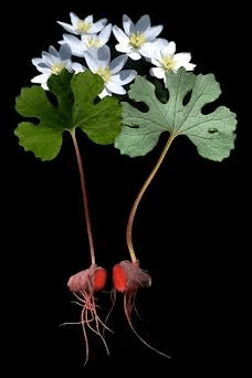 Bloodroot contains a bright red sap with antiseptic properties. For many years it was used in commercially produced toothpaste. Bloodroot ( Cornell) click here for more information.