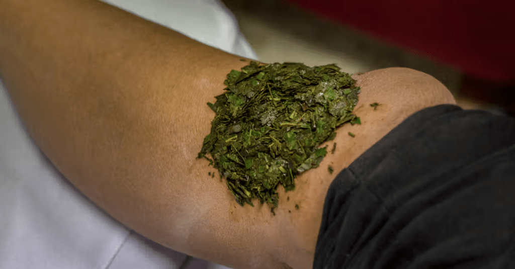 Poultice: Fresh leaves crushed and applied to insect bites, burns, or rashes. Poultice Benefits@ Healthline