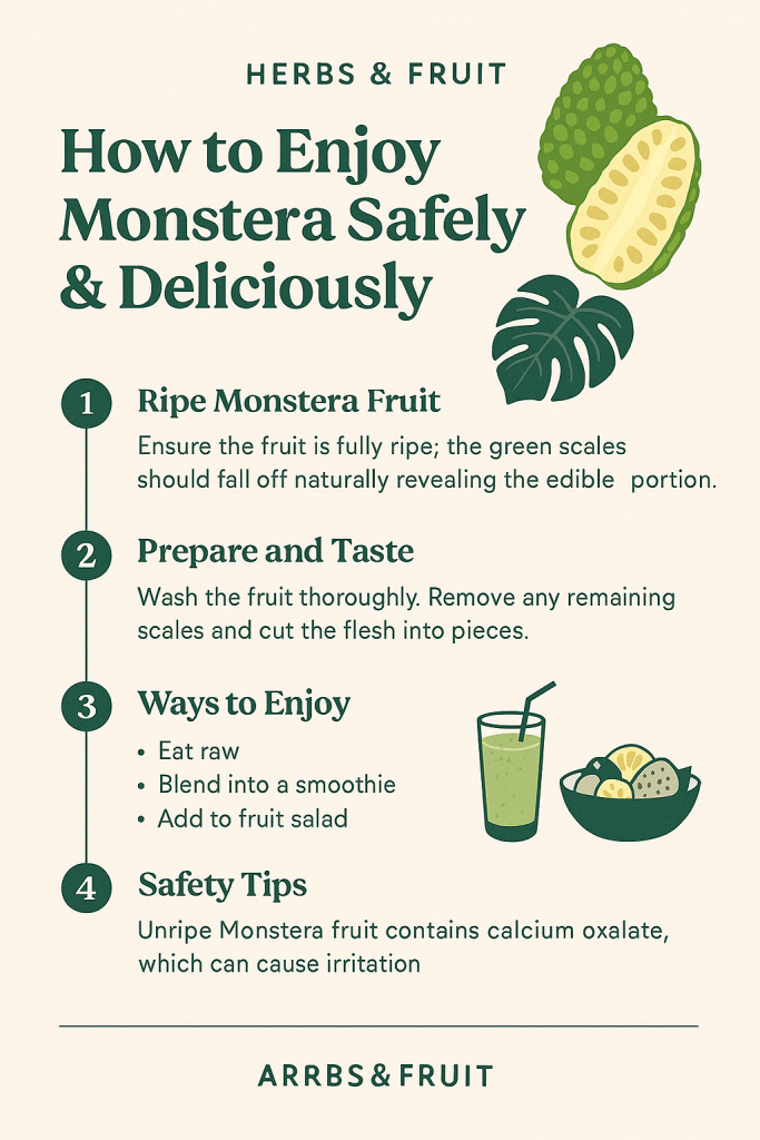 Only use Monstera fruit when fully ripe. Unripe portions contain calcium oxalate crystals that can irritate the mouth and throat.