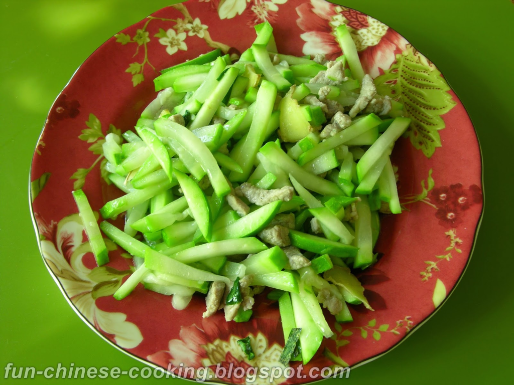 Opo squash (also called calabash gourd, bottle gourd) is abundant in Chinese super market almost year around, they are pretty cheap too. The best part of this vegetable is that it is so easy to clean. This quick stir fry with pork slices is ready within 10 minutes.