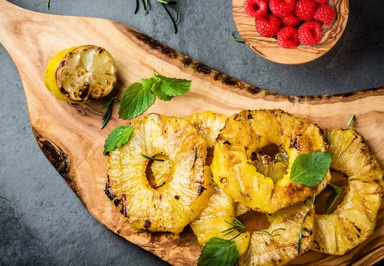 Grilled pineapple retains most of its nutrients while enhancing digestibility: